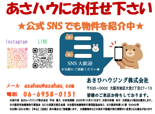 お部屋探しはあさハウまで♪